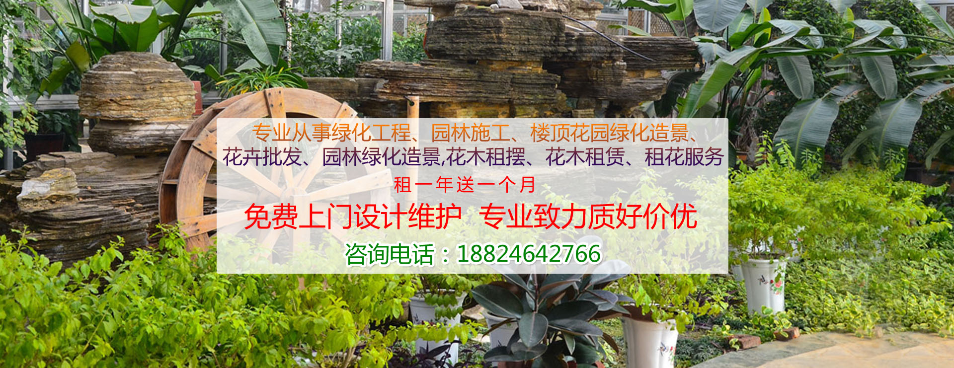 專業從事綠化工程、園林施工、樓頂花園綠化造景、花卉批發、園林綠化造景,花木租擺、花木租賃、租花服務,致力于園林綠化、園林施工;小區、工業區、私人庭院、屋頂樓頂花園綠化造景;寫字樓、賓館酒樓、節日慶典活動、會議等場所的盆花花木租擺租花服務。